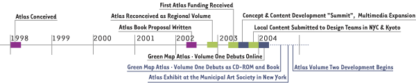 Green Mapmakers shine as promoters and interpreters, archivists and guides, and the Green Map Atlas honors their creativity and vision. With this colophon, we continue the open spirit of the Atlas project by explaining some of our choices in concept, design and production.